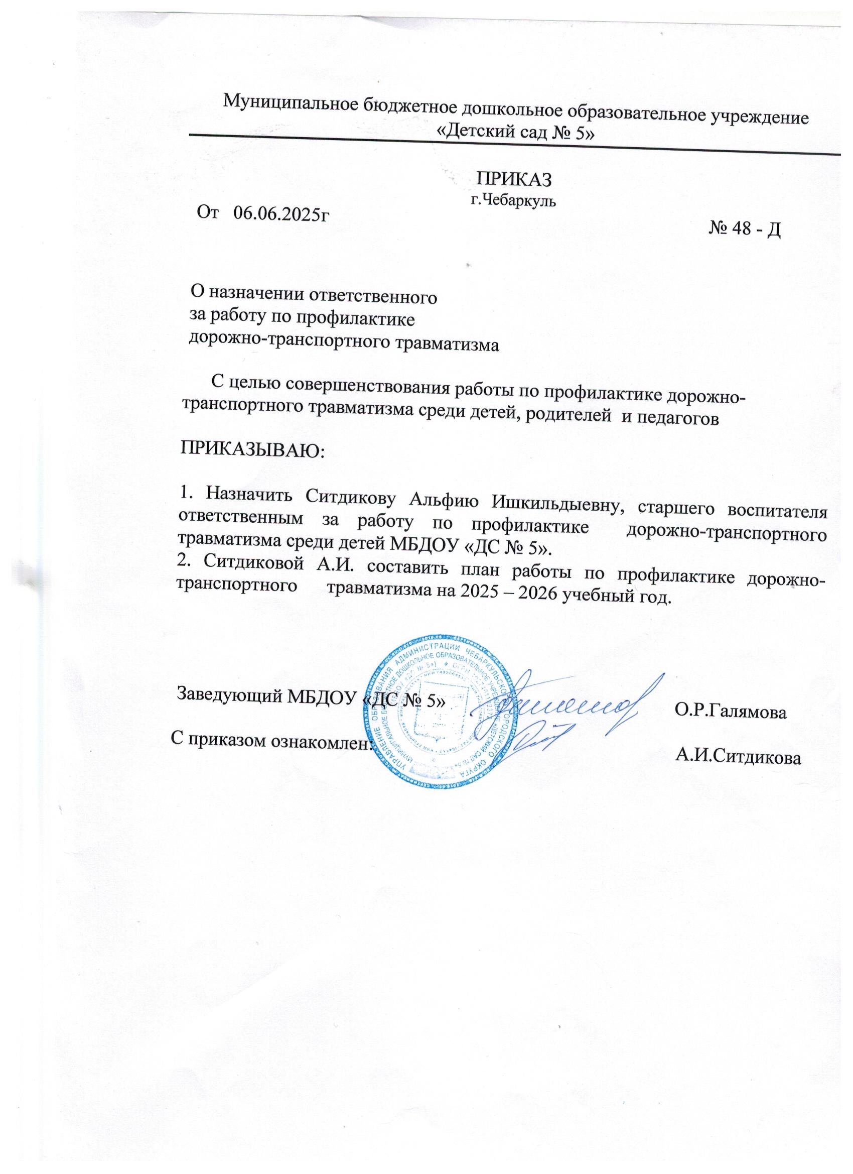 Приказ о назначении ответственного